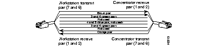 Workgroup CDDI/MLT-3 installations require category 5 equipment throughout. Two types of category 5 modular cables--cross-connect and straight-through--are used to connect concentrators and adapters to the network. (See Figure E-1 and Figure E-2.)