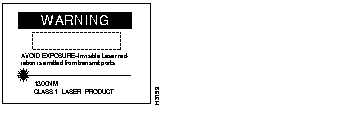 ![]() | Warning Invisible laser radiation may be emitted from the aperture ports of the single-mode FDDI card when no cable is connected. Avoid exposure and do not stare into open apertures. Following is an example of the warning label that appears on the product. (To see translated versions of this warning, refer to the section "Invisible Laser Radiation Warning" in the appendix "Translated Safety Warnings.") |