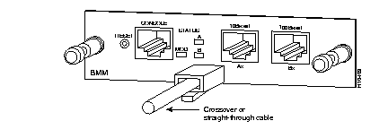 When connecting to other devices, identify the type of port on the other device to which the BMM will connect. If the port on the other device is marked with an X (such as a 100BaseTX-compatible hub, switch, or router) use a crossover cable. If the port on the other device is not marked with an X (such as a server or workstation), use a straight-through cable. Pinouts for the BMM connectors are described in the appendix "Connectors and Cables."