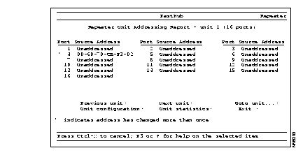 Use the Port Addressing Report menu to display a summary of all ports configured by the Bridge Port Configuration menu (see Figure 3-39).