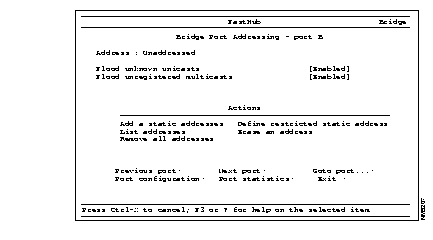 Port addressing--Go to the Bridge Port Addressing menu for the current port.