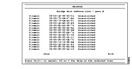 A (10BaseT)--Displays the address types and quantity of each address type on the 10BaseT, Ax port. If space allows, a port address is also displayed.