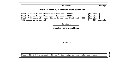 Port A uses Cisco Discovery Protocol (CDP)--Enable or disable the use of CDP on the 10BaseT port. Using CDP, the FastHub can advertise its existence to other devices and receive information about other devices on the same LAN.