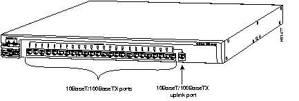 All ports support the 10BaseT and 100BaseT IEEE 802.3 and IEEE 802.3u specifications and connect to any 10BaseT with Category 3 or 4 unshielded twisted-pair (UTP) cable or to any 100BaseTX device with Category 5 UTP cable.