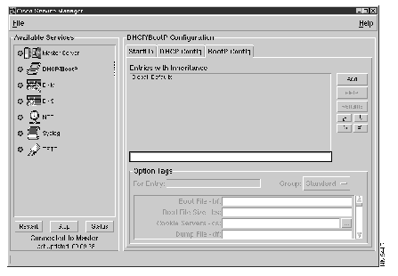 In traditional BootP and DHCP configuration files, option tags were inherited using "tag continuation" (tc) option tags that specify the names of the entries to inherit. The DHCP/BootP server configuration interface provides controls that simplify entry management and inheritance.
