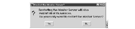 (c) Click Yes in the Restart confirmation dialog box. When the Master Server restarts, a green circle appears next to the DHCP/BootP server icon to indicate it is running.