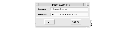 (b) In the Import Zone File dialog, enter admin.test.yoyodyne.com in the Domain field, and install_dir/MultiNet/test/db.admin in the Domain Name field, and click on OK.