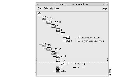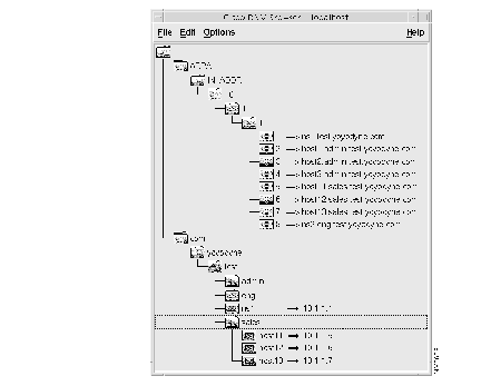 Step 2 If yoyodyne.com already appears in the DNM Browser window (remaining from the exercises in previous chapters), delete the DNM server's database by selecting the top-level domain ("."), and choosing Delete from the Edit menu.