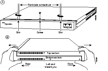Step 7 Pull the top section away from the bottom section. (See Figure A-1, Part B.) The fit is snug, so it may be necessary to pry the chassis sections apart at one end and then the other until they separate.