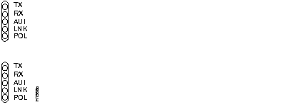 When the AUI LED is on, none of the other LEDs on the network processor module will be on. The other LEDs are meaningful only when you use 10BaseT, and you have a link.