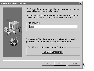 The IPeXchange Monitor feature allows you to control Internet access based on user groups. If your site has a NetWare server, you can download the NetWare user and group lists of the server into the IPeXchange Monitor database -- just by clicking a button. To do so, you need to type the name of one NetWare server in the Monitor Installation Options dialog. (The name must be one word, with no spaces or tabs in it.)