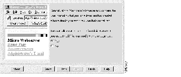 You may choose to link the administrator's existing e-mail account to the Micro Webserver 200 as shown in Figure 4-6. If you decide to establish the link, you must specify your current e-mail server's name by its IP address or host name. In addition, you must enter the domain name for your Micro Webserver 200. For example, in the e-mail address, "pat@www.com," "www.com" is the domain name. Your Micro Webserver 200 will create your Micro Webserver 200 e-mail name with this information. Lastly, the DNS IP address will allow DNS to resolve the IP address and host name for a specific location.