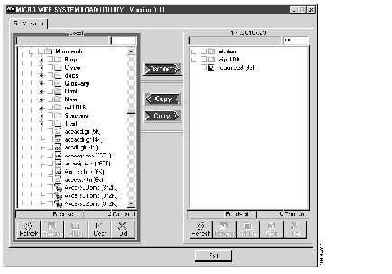 The Micro Webserver has its own file transfer and management utility called the File Transfer Utility.This program runs under Windows 95 and Windows NT 4.x only. If you are running any other operating system, you must use a native FTP client (such as Fetch on the Macintosh). You can access the File Transfer Utility from the Cisco home page or the Cisco Micro Webserver program group on the Start menu. Topics in this section include: