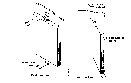 For best support of the switch and cables, make sure the switch is attached securely to a wall stud or to a firmly attached plywood mounting backboard, as shown in Figure 2-7. You must supply your own screws to attach the switch to the wall.