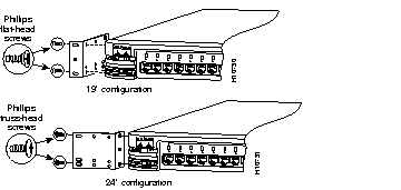The bracket orientation and the screws you use depend on whether you are attaching the brackets for 19-inch or 24-inch rack-mounting: