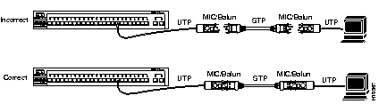 To prevent loopback problems when using STP cabling in a Token Ring network environment, make sure the MICs and baluns are never left unconnected when they are part of a link connected to the switch (see Figure 2-13).