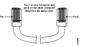You can identify a rollover cable by comparing the two modular ends of the cable. Hold the cable ends side-by-side, with the tab at the back. The wire connected to the pin on the outside of the left plug should be the same color as the wire connected to the pin on the outside of the right plug (see Figure B-6).
