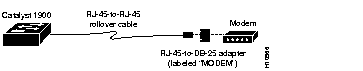 | Console Port (DTE) | RJ-45-to-RJ-45 Rollover Cable | RJ-45-to-DB-25 Modem Adapter | Modem | |