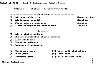 | [S]uspend | The port stops forwarding until a packet with a valid source address is received. |