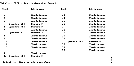 [A] Port addressing. Display the menu described in the "Port Addressing" section in this chapter.