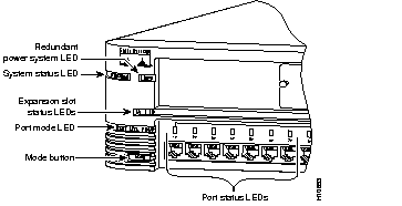 You can use the LEDs on the switch to monitor network activity and switch performance. The Mode button is used to select the modes indicated by the port mode LED. Figure 1-2 shows the location of the LEDs and the Mode button.