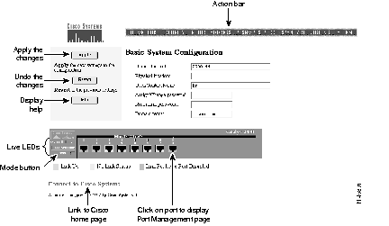 The Basic System Configuration page shown in Figure 4-3 acts as the switch home page. You display it by clicking on Web Console on the Cisco Systems Access Page when you first start Switch Manager and by clicking on Home from the action bar.