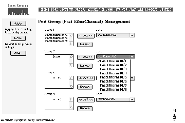 Use the Port Group Management page (see Figure 4-6) to create Fast EtherChannel port groups that act as single logical ports for high-bandwidth connections between switches or switches and servers.