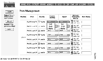 Use the Port Management page to enable and disable ports and to set other port parameters. You can display this page by clicking Ports on the action bar or by clicking directly on the image of the port on the Basic System Configuration page.