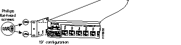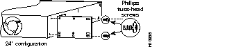The bracket orientation and the screws you use depend on whether you are attaching the brackets for a 19-inch or 24-inch rack. Use two of the supplied screws to attach each bracket, according to the following guidelines: