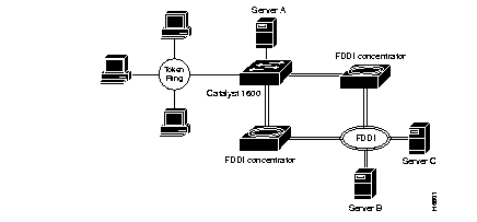 Enable protocol fixups to provide communication between devices on Token Ring networks and FDDI networks. In Figure 6, protocol fixups enable communication between Token Ring stations connected to the Catalyst 1600, and FDDI stations and NetWare servers on the FDDI ring.