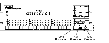 The BNC and RJ-45 connectors are provided for direct attachment to a thin coax or twisted-pair network. In addition, an AUI port is provided as a universal connection to all Ethernet media.