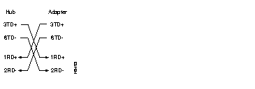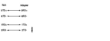 Connection to another hub with internally crossed TD and RD pairs requires a crossover cable. The Modem Cable Schematic and the Null-Modem Cable Schematic are shown in Figure B-5 and Figure B-6.