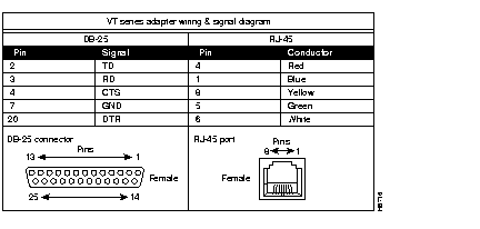 Step 3 Plug the RJ-45 connector at the other end of the EIA/TIA-232 cable into the RJ-45-to-DB-25 female adapter labelled "VT series."