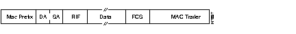 Figure A-1 shows the format of a MAC-level frame. The frame is composed of a MAC Prefix (header), a Destination (DA) and Source Address (SA), a Routing Information Field (RIF) for source routing, a Data field, an FCS and a MAC Trailer. The RIF is not present for non-Source-Routed frames.