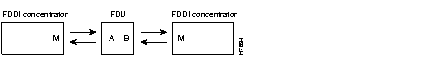 The FDU's FDDI A and B ports can also be connected to the M ports of an FDDI concentrator. Connecting the A and B ports to M ports results in SMT determining which port (A or B) should be used for network traffic. The port not selected is used if a problem occurs with the selected port. This network configuration is known as dual-homing.
