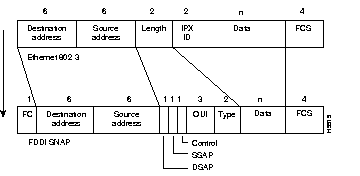 The special case for IPX has to do with translating between FDDI SNAP and the three associated Ethernet frame formats shown in Table C-1. When forwarding from Ethernet to FDDI, the FDDI module translates all three Ethernet frame formats into the FDDI SNAP format. To determine which Ethernet frame format the FDDI SNAP frame should be translated into, the FDDI modules use incoming frames to learn which frame format to use for a given MAC address. Alternatively, the FDDI module provides the option of defining the default Ethernet frame format to be used. Once configured, all IPX FDDI SNAP frames are translated into this Ethernet frame format.