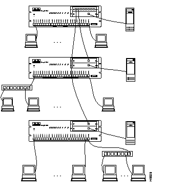 Multiple Catalyst 2800s can be connected via shared 100Base-T using a 100Base-TX/8 module in a Catalyst 2800. More high-speed server connections can be added by using additional Catalyst 2800 modules.
