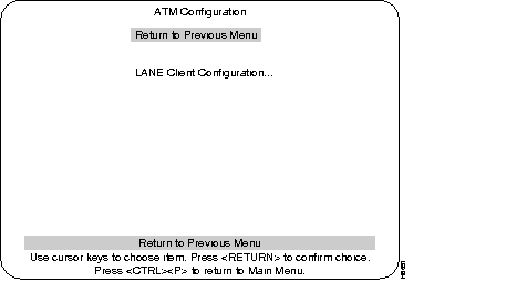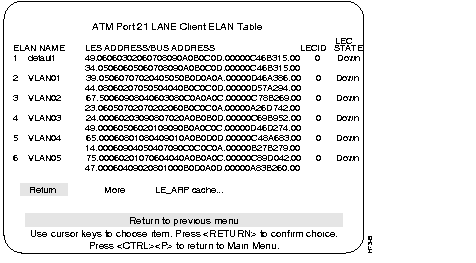 This menu is selected from the ATM Configuration menu. Use this menu to check the configuration information of the LANE Client.