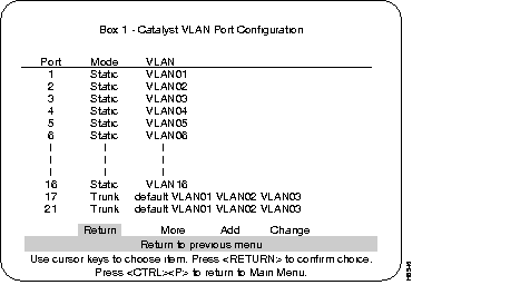 This section describes VLAN, the next selection on the Configuration menu. The optional VLAN and VTP feature is available on the Enhanced version of the Catalyst 3000 series (contact your Cisco sales representative for information). Using the VLAN feature, you can partition a single Catalyst 3200 into multiple VLANs, each containing its own set of ports. Packets are forwarded only between ports belonging to the same VLAN.