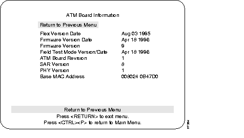 The ATM Board Information menu provides details about the selected ATM board.