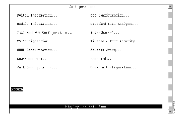 The Catalyst 3900 provides status and statistical information for several aspects of the ATM expansion module. To access the status and statistical information, select Statistics on the Main Menu. The Statistics panel (Figure 19) is displayed.