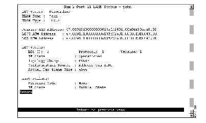 To view the status of the elements of this LEC, select LANE Status on the Port x LEC Statistics Menu panel. The Port x LANE Status panel (Figure 25) is displayed.
