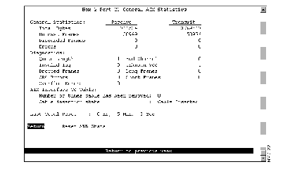 To access statistics about the virtual ATM ports, select Port Statistics on the Statistics Menu panel and specify the port identifier of the ATM port. The Port x ATM Statistics panel (Figure 21) is displayed.