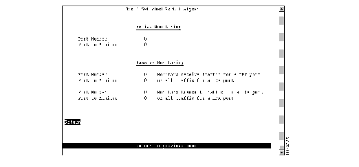 The Catalyst 3900 allows you to define up to 64 traffic profiles. These profiles can be used to define the maximum rates for each traffic type. The traffic profiles are defined on the Traffic Profile Table Setup panel. Refer to "Configuring Traffic Profiles Tables" in the "Configuring the ATM Expansion Module"section for more information.