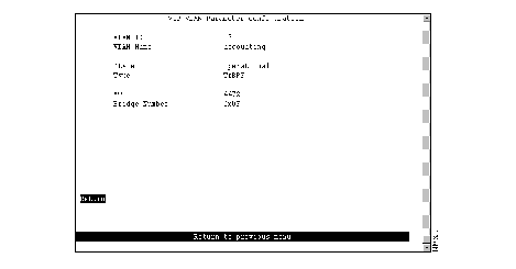 - VLAN Name--ASCII name associated with the VLAN, which is synonymous with the VLAN's emulated LAN name on LANE trunks.