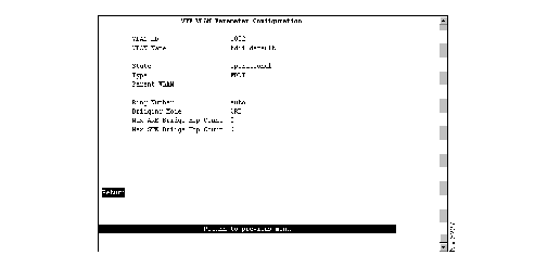 - VTP Administrative Configuration--Select this option to display the current VTP parameters. Refer to the "Viewing VTP Parameters" section.