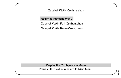 This section describes VLAN, the next selection on the Configuration menu. The optional VLAN feature is available on the Enhanced version of the Catalyst 3000 (contact your Cisco sales representative for information). Using the VLAN feature, you can partition a single Catalyst 3000 into a VLAN each containing its own set of ports. Packets are forwarded only between ports belonging to the same VLAN. The benefit of VLAN is to restrict access from one segment to another, either for security purposes or to reduce intersegment traffic. Figure 7-1 illustrates a Catalyst with four VLANs.