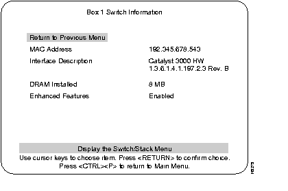 "Enabled" indicates that the optional Catalyst 3000 Enhanced feature set is enabled. To enable the feature set, call your local reseller to obtain a 10-digit "key." Highlight the field, enter the key (code), and press RETURN. If you purchased the Catalyst 3000 with the Enhanced feature set and you need to re-enter the code, the code is on the bottom of the unit.