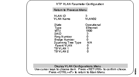 Step 7 When you are finished defining new VLAN names, select the return option to return to the VTP and VLAN sub-menu.