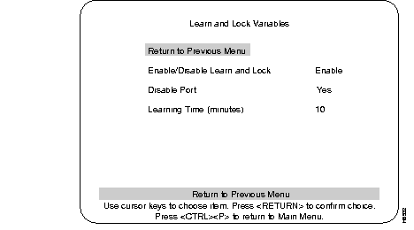 Step 2 Select the Learn and Lock Variables heading. Use this menu to enable or disable Learn and Lock (see the following Learn and Lock Variables menu screen).